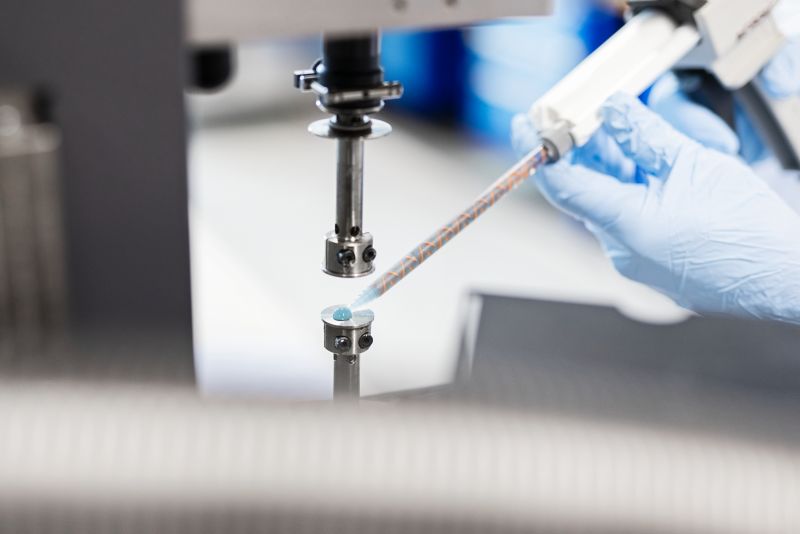 此外,二乙烯基醚(DVE)為可以透過熱、光或酸進行特殊「脫膠」的黏合劑提供了基礎。這項特性將促進電子產品和家用電器的回收利用,並支持循環經濟。在BIOVIN專案中,總共生產了14種不同的預聚物,使用了二乙烯基醚(DVE)和市售生物基二羧酸。這些預聚物的生產不需要添加劑或催化劑,且大多數情況下不需要溶劑。透過光譜研究證實,在溫和的實驗條件下,熱裂解和化學裂解實現了脫粘。儘管仍需進一步優化,開發的預聚物已顯示出巨大的潛力,可用於新的可回收黏合劑系統。